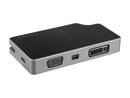 This USB-C multiport video adapter offers a portable solution for connecting your USB Type-C laptop to a VGA, DVI, HDMI or Mini DisplayPort (mDP) display. It features USB Power Delivery, so you can power your laptop while outputting video using the same USB-C port. Power and Video in One Port This USB-C adapter supports USB Power Delivery up to 95 watts and features an additional USB-C port. You can charge your laptop using its USB-C power adapter, even while you output video. Many laptops support charging through a USB-C port with Power Delivery, check your specifications to confirm compatibility. All-in-One Video Connectivity with Travel in Mind Carry one adapter instead of four. This versatile 4-in-1 monitor adapter lets you connect your USB-C laptop to any display. With its durable aluminum enclosure and a magnetic retainer that secures the breakout cable in place while you're not using it, the adapter is rugged enough to carry in your travel bag. Astonishing Picture Quality The HDMI and mDP outputs support UHD 4K resolutions, providing four times the picture quality of high-definition 1080p. All of the outputs (HDMI, mDP, VGA, DVI) support high-definition resolutions up to 1920 x 1200. The adapter is compatible with USB-C DP Alt Mode devices. Stylish Connectivity The USB-C adapter has a Space Gray trim and built-in USB-C cable designed to match your Space Gray MacBook, or MacBook Pro.CDPVDHMDPDP is backed by a StarTech.